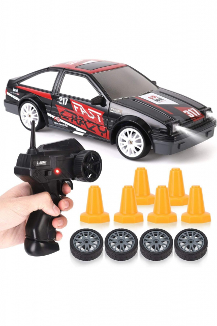 Işıklı Uzaktan Kumandalı Full Fonksiyon 2.4G Şarjlı 1:24 Drift Atan Araba RC Yarış Arabası 15+km Hız